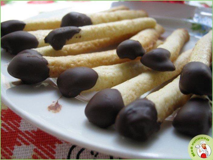 Такое печенье очень нравится детям — интересно и готовить, и кушать. Это классическое песочное печенье с шоколадной глазурью.