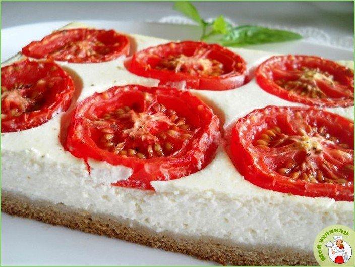 Если вам по душе оригинальные и несложные варианты несладкой выпечки, тогда обязательно рекомендую этот рецепт. Тонкий хрустящий корж, насыщенная творожная начинка и помидорки — вкусно невероятно.
