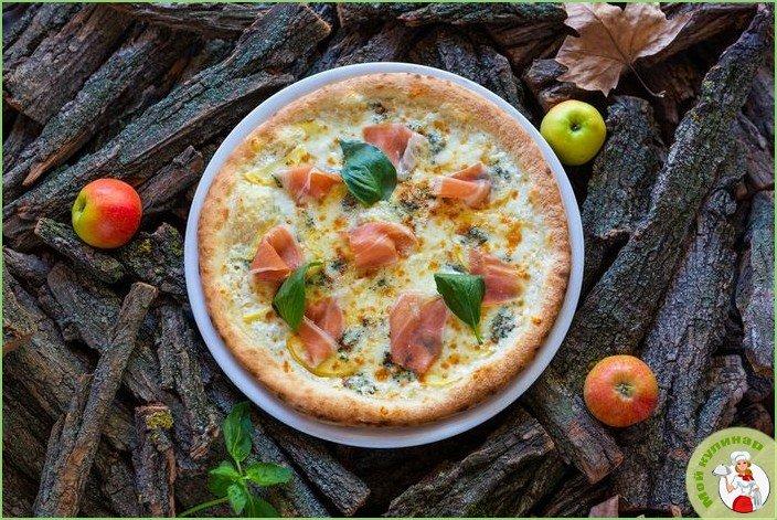 Пицца с яблоками и сыром отлично подойдет в качестве легкого ужина или вечернего (или даже ночного) перекуса. Яблоки карамелизируем, добавим «Моцареллу», «Пармезан» бекон.