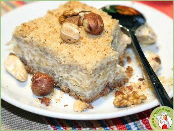 Рецепт приготовления пирога с яблочным соусом, корицей, гвоздикой, имбирем, грецкими орехами и глазурью из сливочного сыра, сахарной пудры и ванильного экстракта.