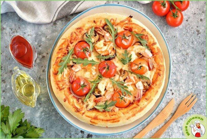 Для любителей пиццы и не только этот простой рецепт приготовления пиццы с креветками и грибами стоит взять на заметку. Получается очень вкусная, сочная и сытная пицца для большой компании.