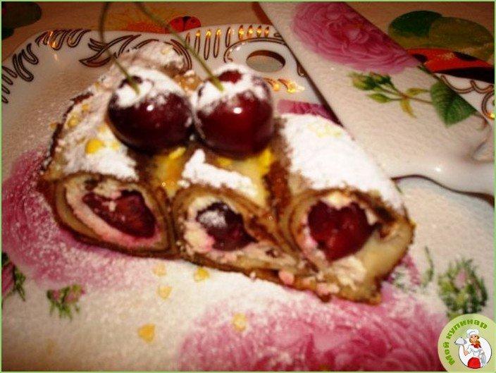 Перед Вами рецепт вкусного пирога с песочной основой и нежной начинкой из творога и свежей черешни.