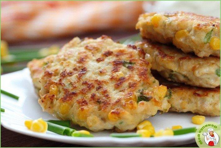 Весьма оригинальный способ приготовить куриное филе — это пожарить нежные, мягкие и весьма легкие куриные оладьи с кукурузой.