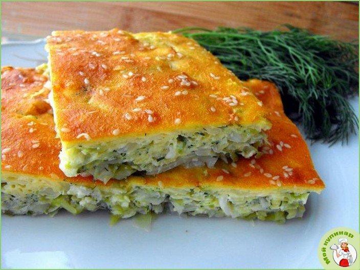 Простой в приготовлении и очень вкусный пирог из теста на основе яиц, муки, сметаны и майонеза. В качестве начинки — хрустящая капуста с укропом и кунжутом.