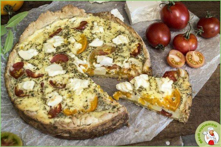 Рецепт приготовления пирога с цветной капустой, сыром Пармезан, сыром Грюйер, Маскарпоне, луком, горчицей и мускатным орехом.