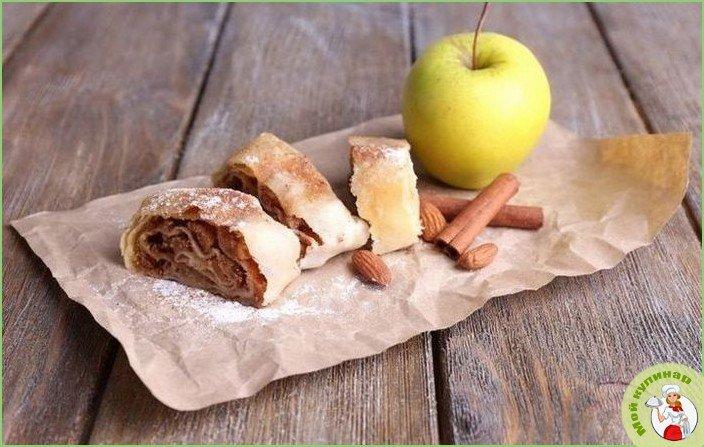 Сегодня предлагаю приготовить очень вкусный десерт из слоеного теста с ароматной яблочной начинкой с добавлением изюма, грецких орехов и корицы.
