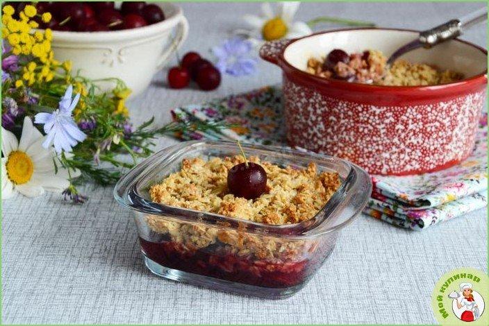 Любителям десертов на скорую руку могу предложить очень классный и невероятно аппетитный вариант, как приготовить вишневый крамбл. Основная прелесть крамблов — это соотношение теста и начинки.