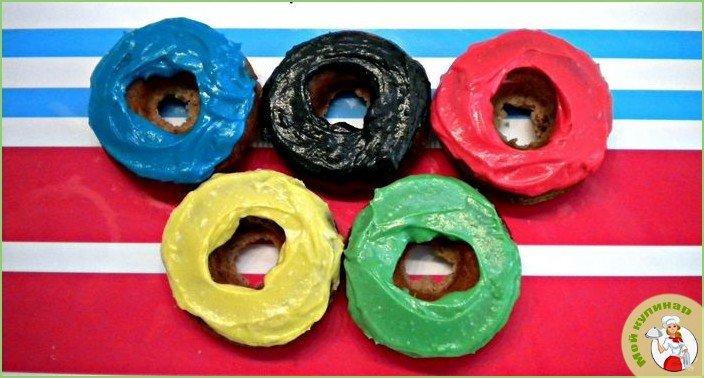 В преддверии праздника Олимпиады мне захотелось составить меню из блюд, которые будут нести олимпийскую символику. Вот так и возник рецепт пончиков «Олимпийские кольца» с фото. Делюсь с вами.