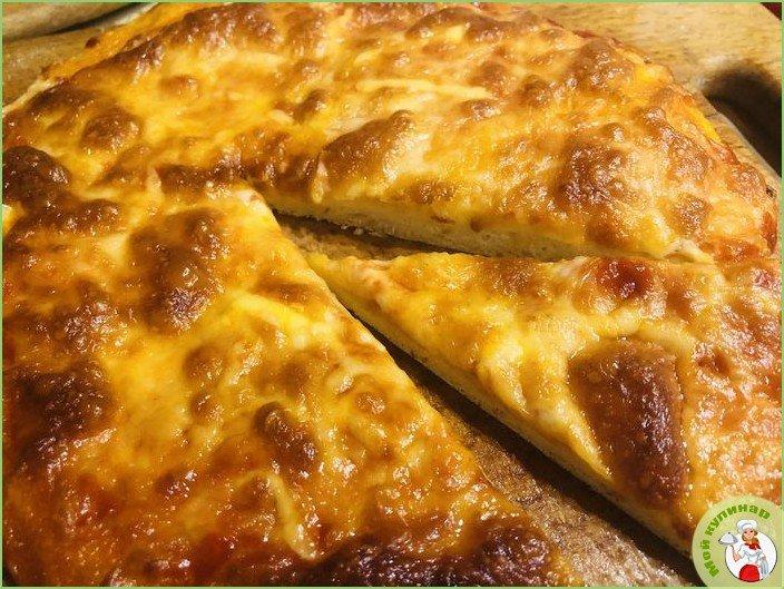 Рецепт приготовления пиццы с сыром Моцарелла, Проволоне, Пармезан и соусом Песто.