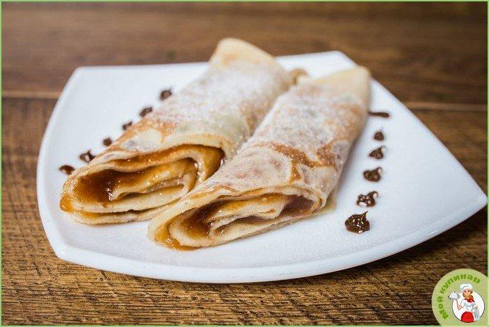Для блинчиков можно взять свой любимый рецепт, если нет, с удовольствием поделюсь своим. Повидло может быть любое, главное — густое, я выбрала яблочное.