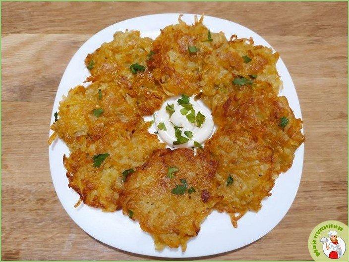 Эдакая вариация на тему популярных картофельных драников. В отличие от них, картофель выкладывают на всю поверхность сковороды.