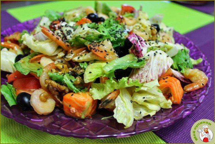 Этот салат по праву можно называть «королевским», так как ингредиенты не из дешевых. Смотрите, как приготовить салат с красной рыбой и креветками для праздничного стола, и оценивайте блюдо сами.