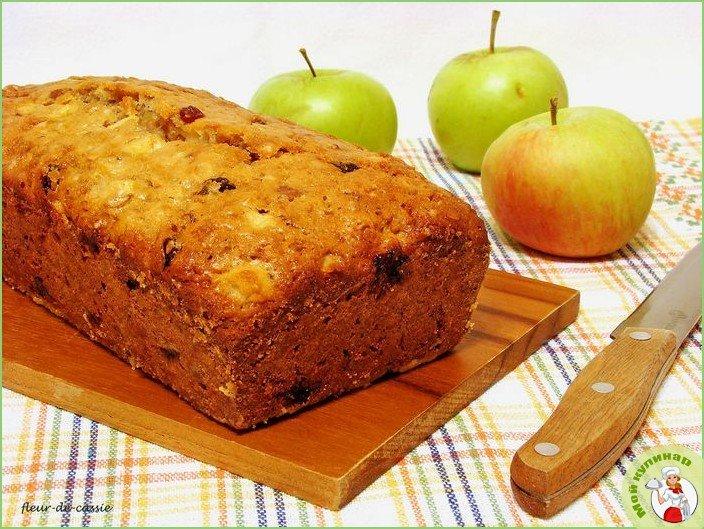 Рецепт приготовления хлеба с ломтиками яблок, грецкими орехами, семенем льна, корицей и мускатным орехом.
