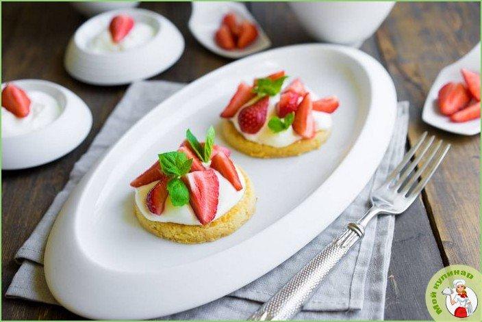 Рецепт песочного печенья с клубникой — простое приготовление вкусной домашней выпечки с ягодной начинкой и сливками.