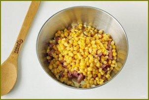 Добавьте кукурузу, предварительно слив с нее всю жидкость.