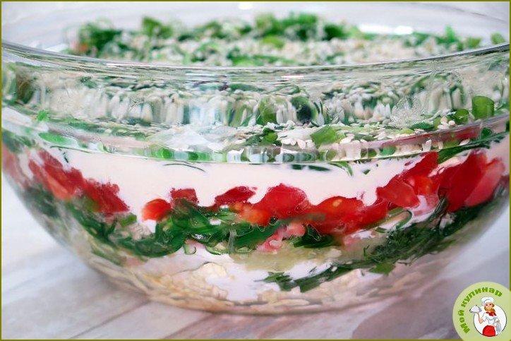 9. Яйцо очистите и нарежьте мелко. Выложите сверху, смазав майонезом.