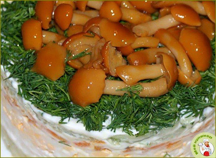 Вкусный салат с опятами