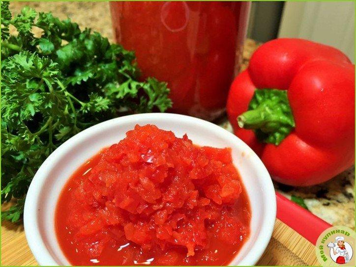 Измельчите в мясорубке или в чаше блендера помидоры, перцы, петрушку.
