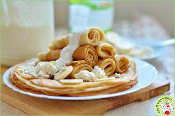 Тоненькие нежнейшие блины с ароматной творожной начинкой — прекрасный выбор для семейного завтрака или чаепития. Понравятся такие блинчики и детям, и взрослым.