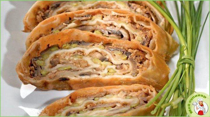 Сегодня предлагаю приготовить штрудель с грибами. Это простой рецепт из готового слоеного теста и шампиньонов в качестве начинки.