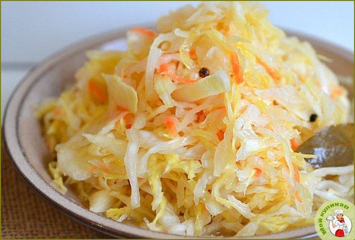 Маринованная капуста с морковью — прекрасная закуска на каждый день или же к праздничному столу, как вариант. Готовится очень просто и прекрасно хранится в холодильнике. Попробуйте!