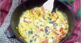 Омлет с перцем и помидорами получается насыщенным и вкусным. Блюдо готовится из яиц и молока, взбитого с солью. В качестве начинки — помидоры, перец.