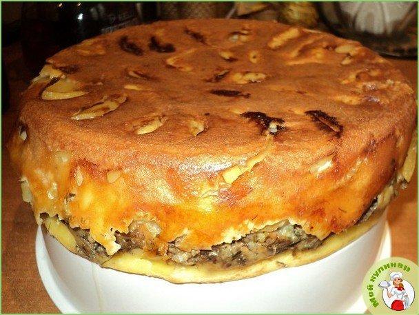 Заливной пирог с картофелем и сайрой