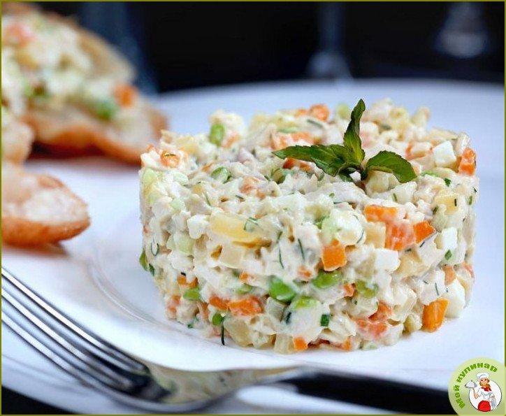 Салат «Оливье» — один из любимых салатов в нашей семье. Я люблю классический рецепт салата, но если добавить немного чеснока, получается интересный и необычный, но все тот же вкусный салат.