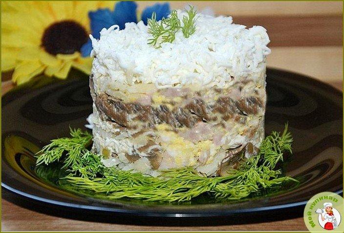 Хочу поделиться рецептом любимого салата, он невесомый просто, нежный-нежный! Не смотря на жареный лук в салате, он не делает его тяжелым для желудка, а только подчеркивает вкус!