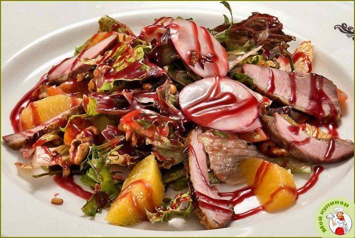 Рецепт приготовления салата с утиной грудкой — для вас! Вам придется по душе неожиданное, но очень удачное сочетание отварной грудки с клюквой и орехами. Пикантно и вкусно, попробуйте сами!