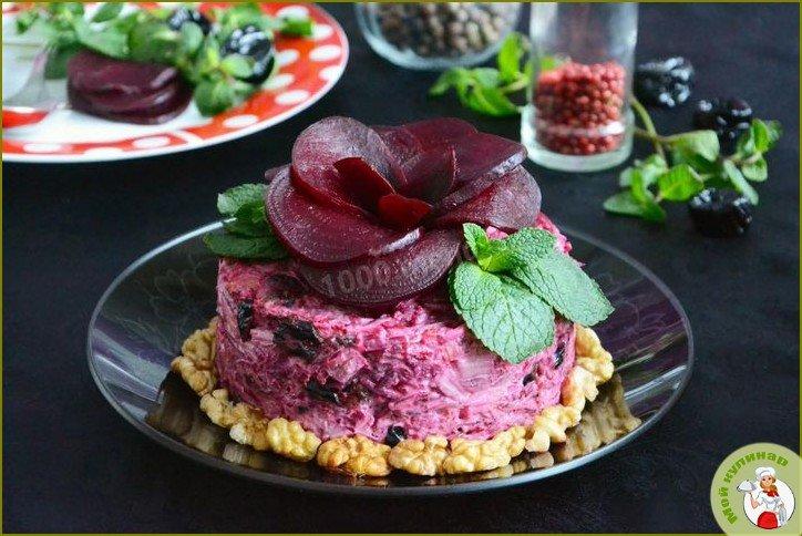 Свекольный салат из свеклы с черносливом и грецкими орехами, заправленный майонезом, является одним из традиционных салатов современной украинской кухни. Если любите свеклу — салат вам понравится.