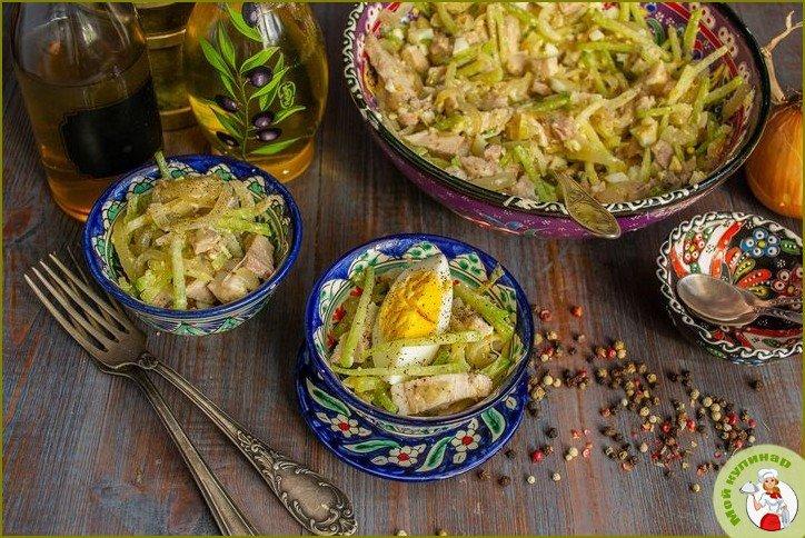 Сказать что это вкусный салат, значит не сказать ничего. Это невероятно вкусное сочетание говядины и редьки, жареный лук играет не последнюю роль. Обязательно приготовьте салат «Узбекистан»!