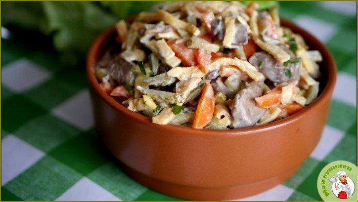 Салат с вареной печенью и солеными огурцами — недорогой, легкий в приготовлении и, конечно же, очень вкусный салат!