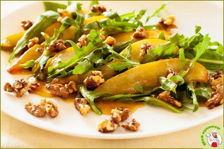В этом салате тонкое, но гармоничное сочетание всех ингредиентов, которые идеально дополняют друг друга. Медовая заправка с грушей идеально играет вкусом на фоне рукколы и острого сыра с орехами.