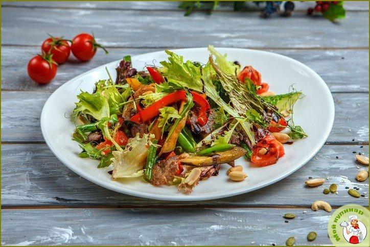 Этот рецепт салата от известной фигуристки Марии Бутырской. Это даже не салат, а практически полноценное горячее блюдо. Салат полезный, малокалорийный и очень вкусный.