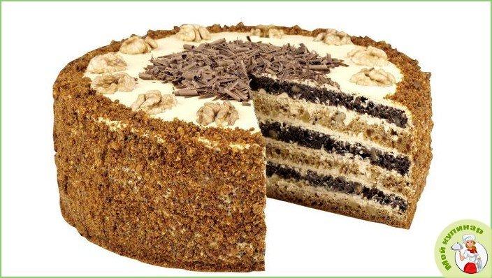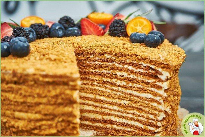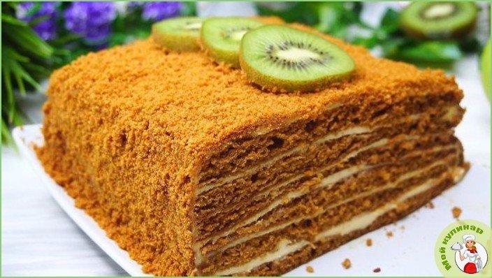 Очень популярный и вкусный торт, который еще величают «Медовиком». Он готовится на основе меда, маргарина и муки.