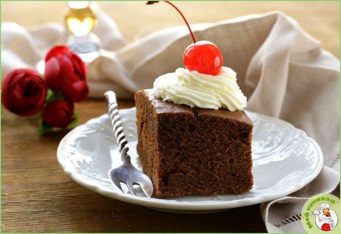 Вашему вниманию — вкусный и в меру сладкий торт с насыщенными плотными шоколадными коржами и восхитительными вишневыми нотками.