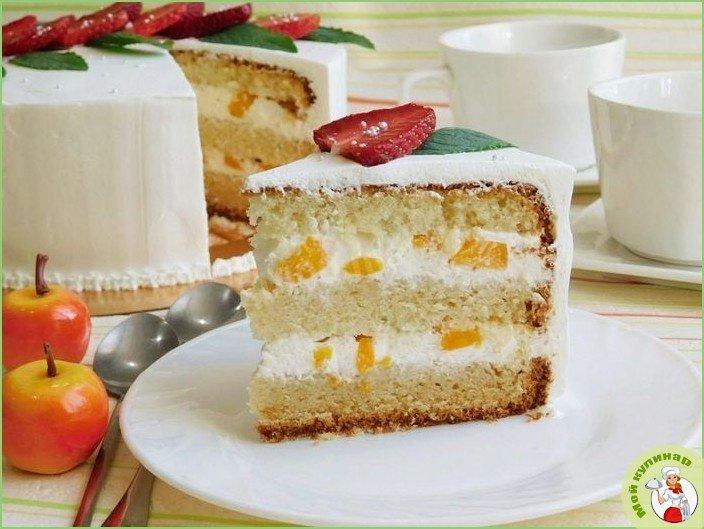 С помощью этого рецепта при минимуме хлопот и затрат вы приготовите вкуснейший торт с консервированными персиками, который будет вполне уместен и на детском дне рождения, и на праздничном столе.