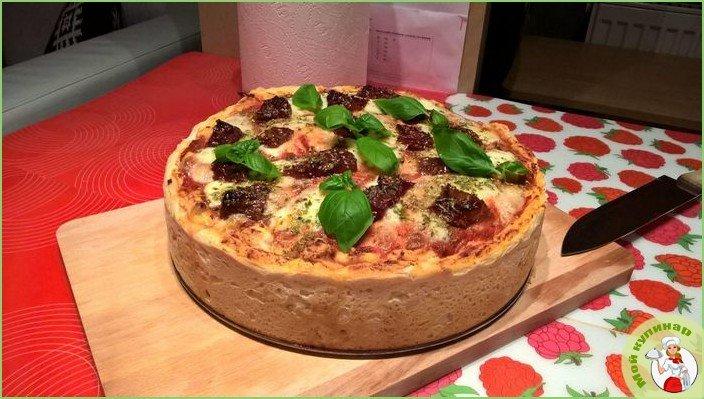 Рецепт приготовления пиццы-торта или пирога-пиццы, которая станет не только сытной и яркой закуской, но и несомненным украшением стола.