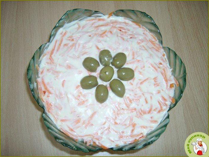 Вкусный, яркий и симпатичный зимний салат с маринованными грибами, морковью и луком. Такой солнечный салат можно подать к празднику или порадовать домашних в будний день.