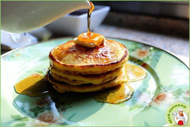Кукурузная мука придает тесту зернистую текстуру и превращает обычные оладьи в маленькие желтые солнышки. Оладьи лучше всего подавать сразу же после их приготовления.