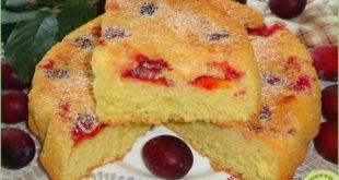Любите простую и недорогую домашнюю выпечку? Тогда возьмите на заметку этот интересный вариант приготовления манника со сливами.