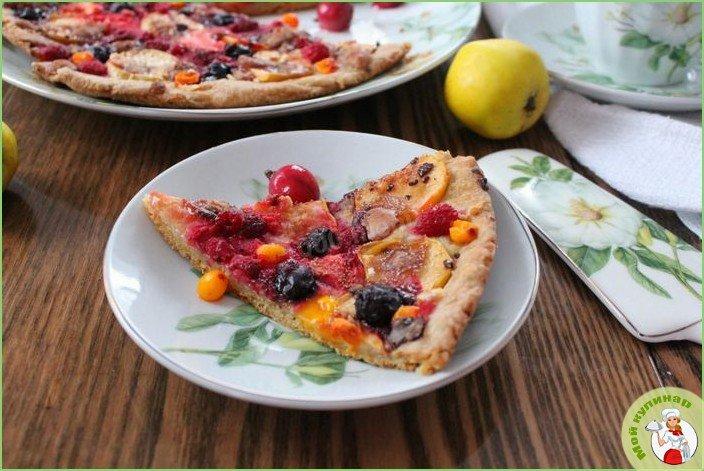 Если раньше вы еще не пробовали такую пиццу, то обязательно сделайте ее хотя бы раз. Блюдо выглядит красиво и очень аппетитно. В качестве основы можно использовать любое тесто (слоеное, бисквитное, песочное), а также можно раскрошить песочное печенье. Для кремовой прослойки можно использовать взбитые сливки или сметану, а также сливочный сыр.