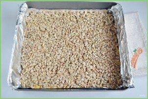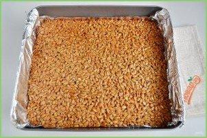 10. Пирог сразу горячим порежьте на квадратики, после остывания это будет сделать сложно, ведь семечки затвердеют в карамели.
