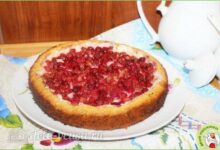4. Сверху посыпаем миндальной крошкой вперемешку с мукой и сахаром (тут уже по вкусу). Запекаем теперь пирог 35 минут при 180 градусах.