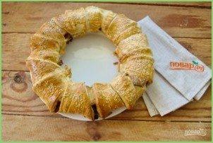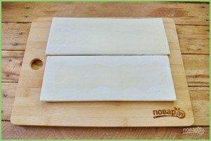Слоеное тесто нужно разморозить до мягкого состояния, но не полностью. Вы должны иметь возможность раскатать его скалкой так, чтоб тесто не потрескалось на осколки.