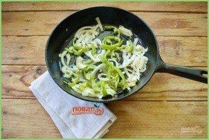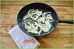 Снимите обжаренный фарш с огня. В сковороду добавьте репчатый лук, обжарьте на растительном масле.