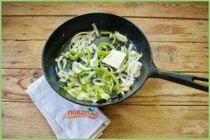 В сковороду добавьте немного сливочного масла и верните фарш в сковороду. Смешайте фарш с обжаренными овощами.