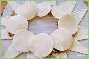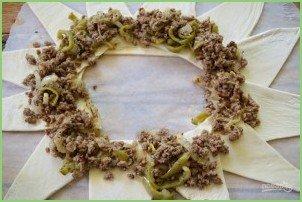 Подготовленную начинку уложите по кругу, на толстую часть треугольников.