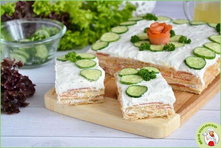 Закусочный торт с рыбными консервами\ Коржи Наполеон